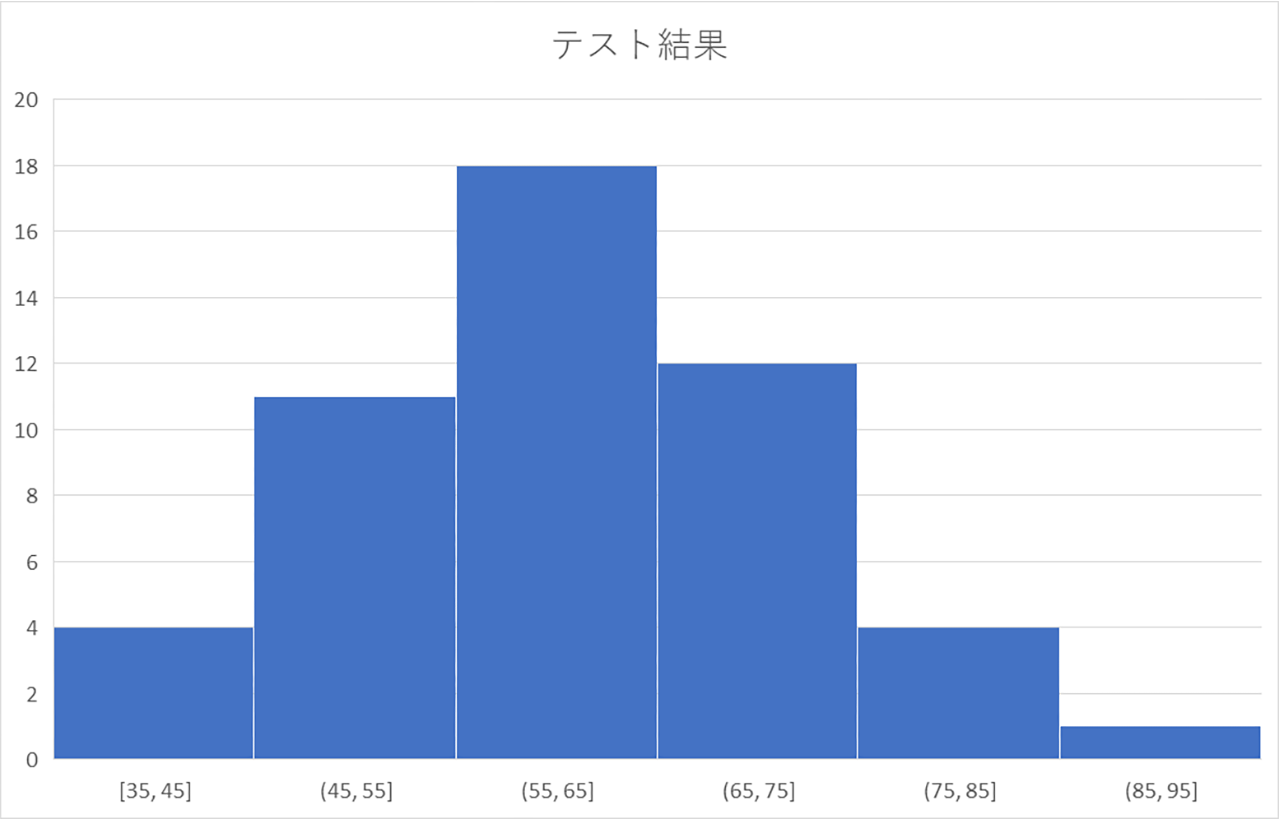 ヒストグラムとは、度数分布表をグラフ化したものです。これにより、直感的に傾向がわかります。