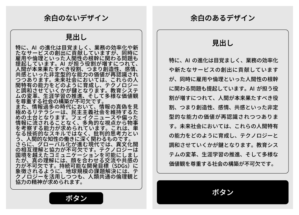 - 余白はWebサイト全体で統一したルール(16の倍数など)を設けて適用します