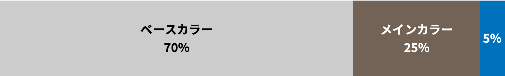 - それぞれの割合はベースカラー(70%)、メインカラー(25%)、アクセントカラー(5%)とする