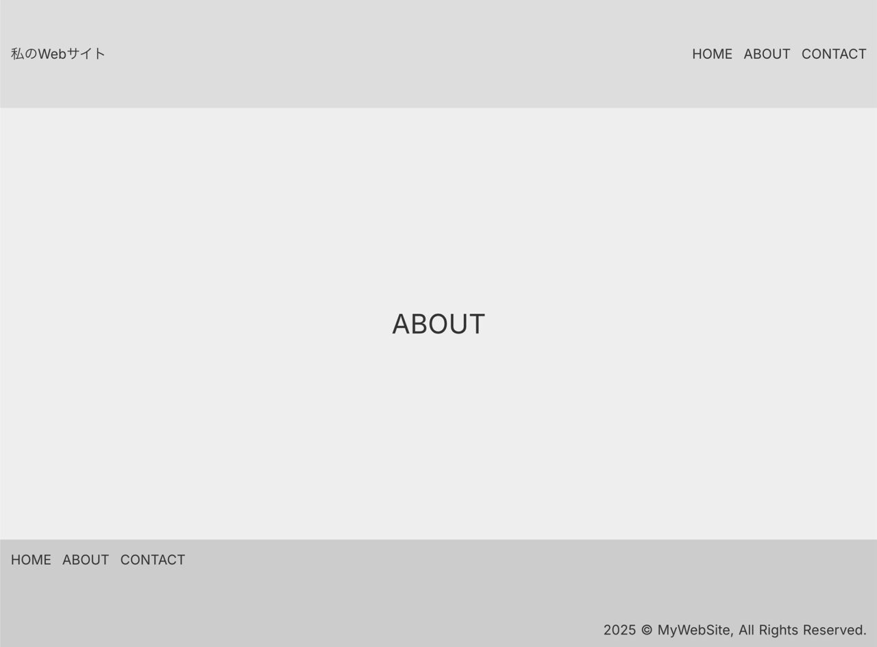 下層ページとして「ABOUT」と「CONTACT」を追加します。