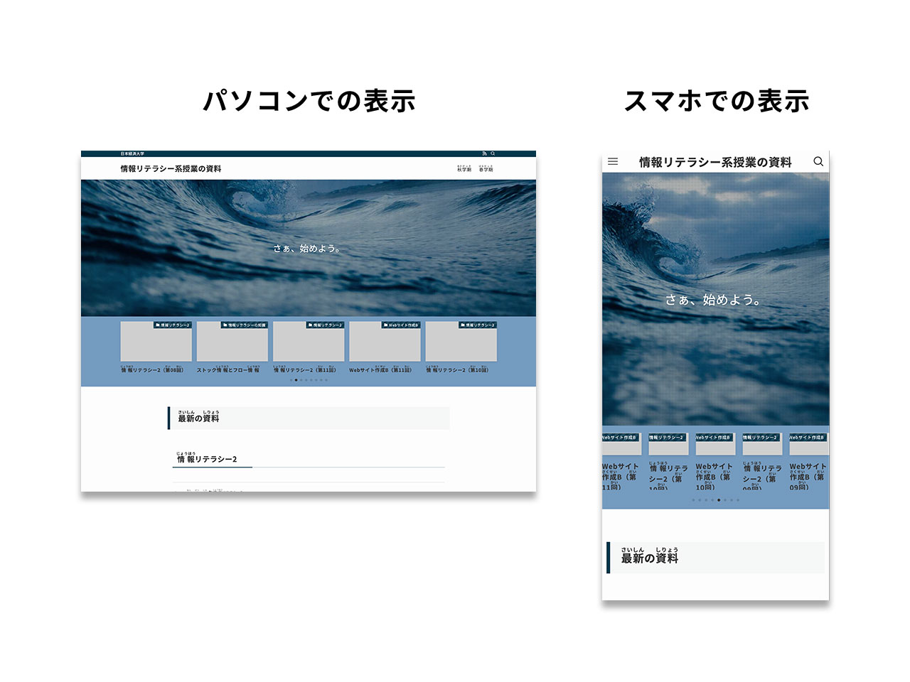 Webサイトをいろいろなデバイスから良い状態で見られるようにする「レスポンシブデザイン」について学びます。